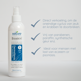 De Bioskin DermaSpray Intensive is al vele jaren "de redder in nood" voor iedereen met een zeer droge & jeukende huid. De fijne textuur van de Spray trekt diep in de huid, waar het de huid voedt zodat deze sterker en gezonder wordt. Doordat het een Spray is, is het product makkelijk in gebruik. Het is een niet vette substantie en hoeft niet in de huid gesmeerd te worden. Hierdoor kan de Spray voeding geven aan de geirriteerde huid die aanraking niet verdraagt, en kan het zelfs op moeilijk te bereiken plaatsen worden gebruikt zoals de hoofdhuid.