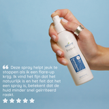 4. Wanneer je de Spray gebruik voor het gezicht en rond de ogen, gebruik dan een (herbruikbaar) wattenschijfje zodat je contact met de ogen vermijdt of gebruik onze DermaSerum die speciaal ontworpen is voor het gezicht.